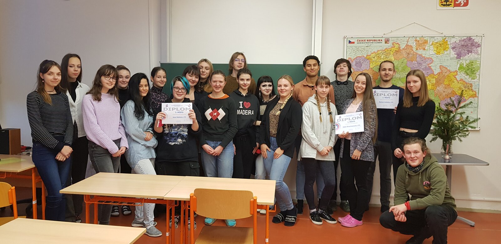 Třicet žáků z různých ročníků předvedlo 6.12. 2022 své recitátorské umění ve školním kole recitační soutěže. Zazněla tak díla klasiků, novodobých básníků i neznámých autorů (zatím). Všichni soutěžící byli pochváleni a odměněni za přípravu i hezké vystoupení. Vítězky a vítěz – Ester Širochmanová (LY3), Roman Ambróz (LY2) a Jana Nyklová (LY1) pak budou reprezentovat školu v mimoškolních recitačních soutěžích. Porotou byli také oceněni Tereza Vaňková (MZ1), Alexandra Nikolova (PS1A) a Oliver Kanyza (PS2A). Bylo to krásné poetické odpoledne!
